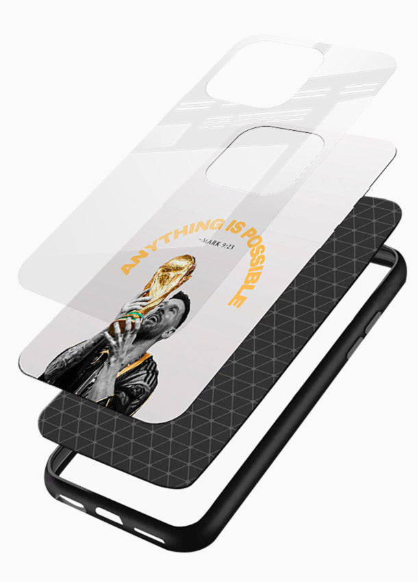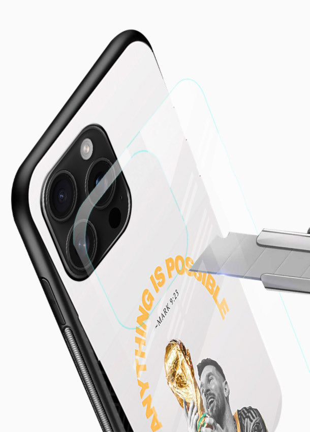 A motivational football artwork symbolizing belief, achievement, and championship spirit. Built on scratch-resistant tempered glass with glossy finish and protective bumper sides.