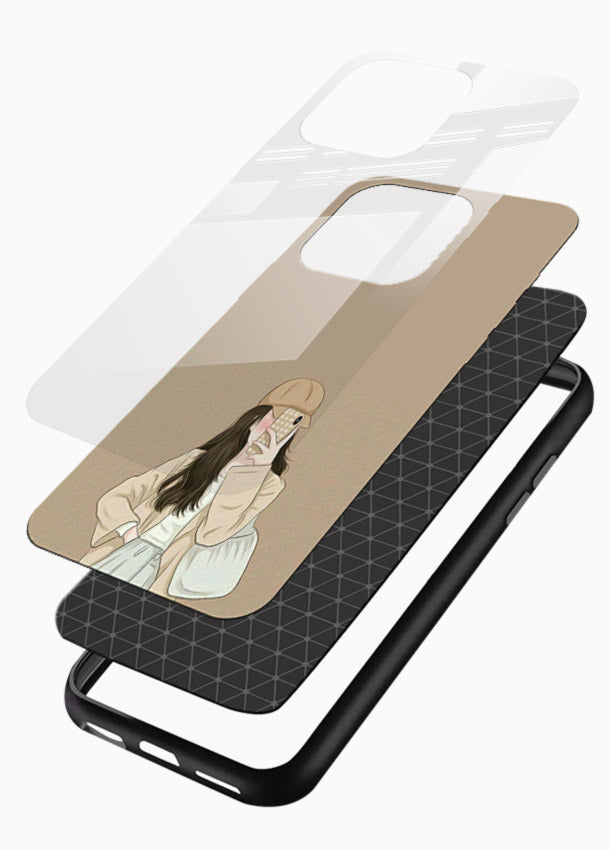 Beige Coat Girl Glass Back Cover