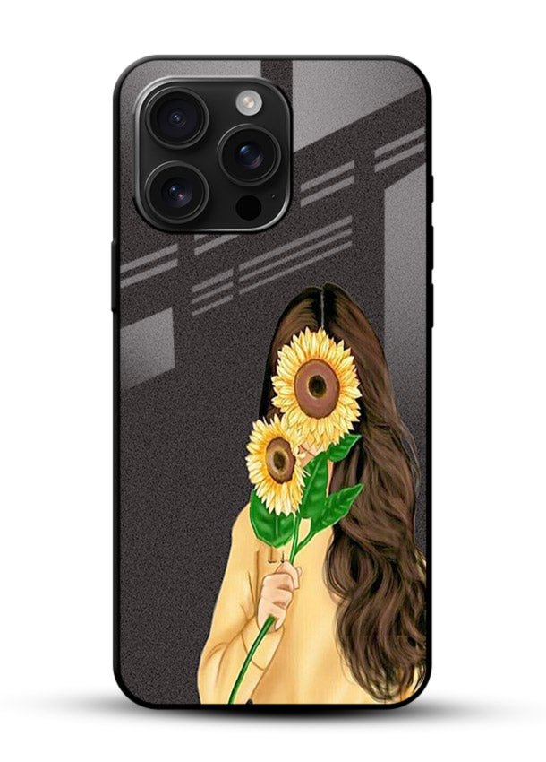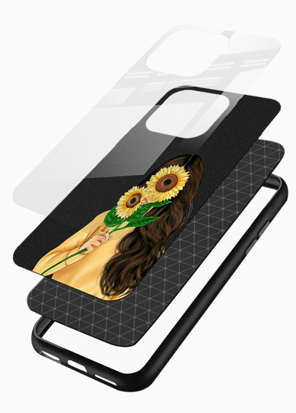 Sunflowers and retro icons create a bright uplifting collage on your Mobile Glass glass back cover, inspiring joy, travel vibes, and warm sunlight-filled positivity.