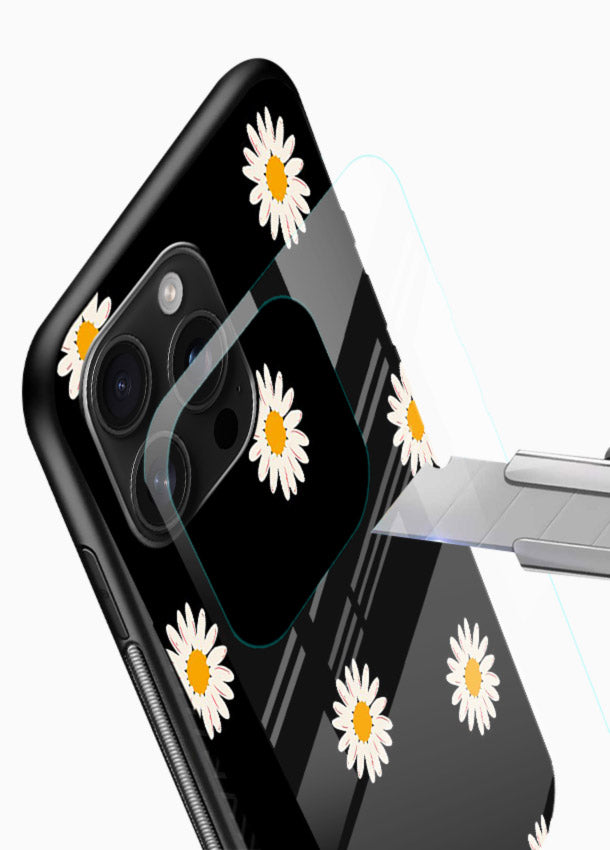 Playful daisy pattern featuring bold flower outlines and cheerful colors, giving your Mobile Glass a lively vibrant patterned glass back cover aesthetic.