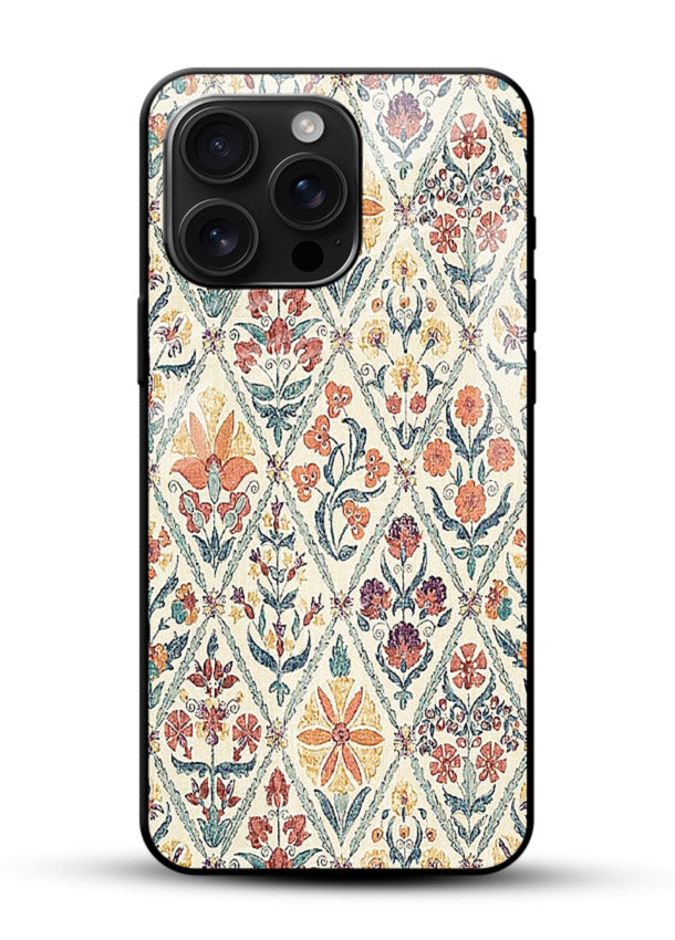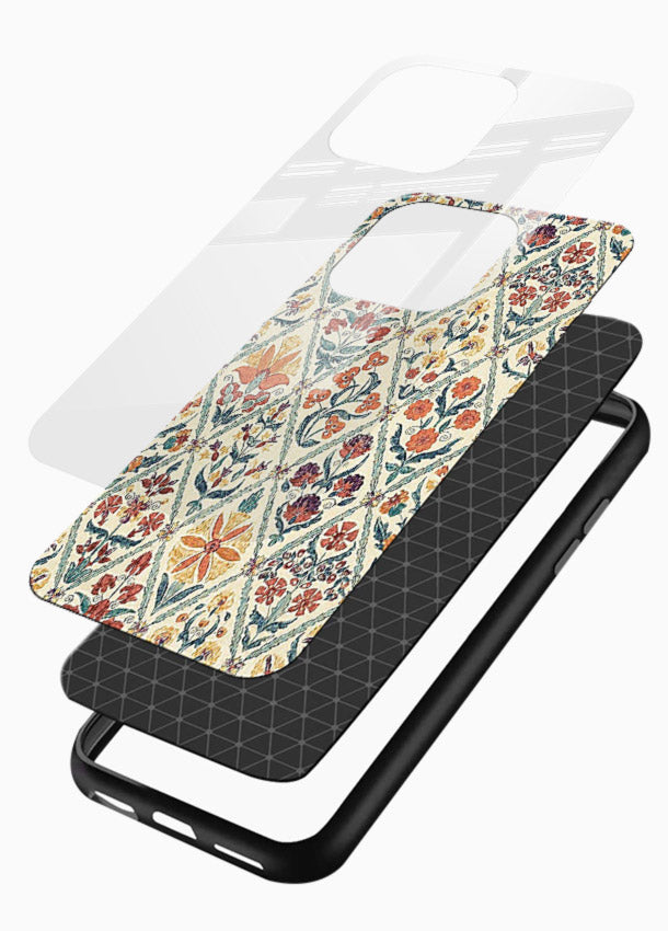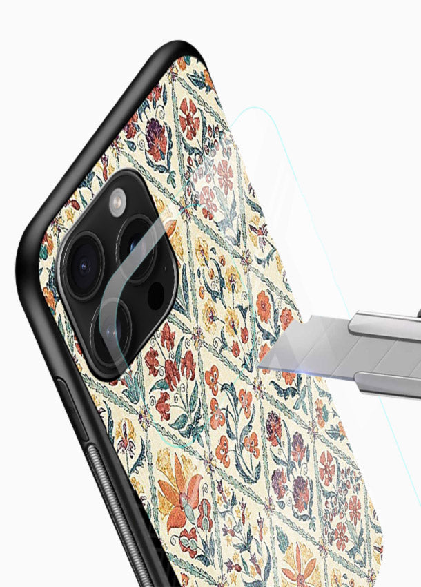 Soft floral tile pattern featuring intricate petals and pastel symmetry, giving your Mobile Glass an elegant refined aesthetic patterned glass back cover.