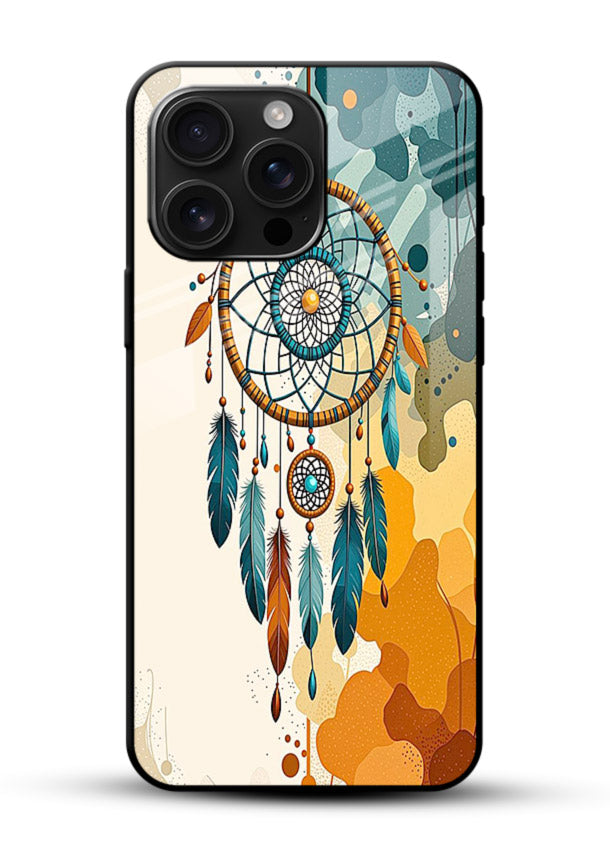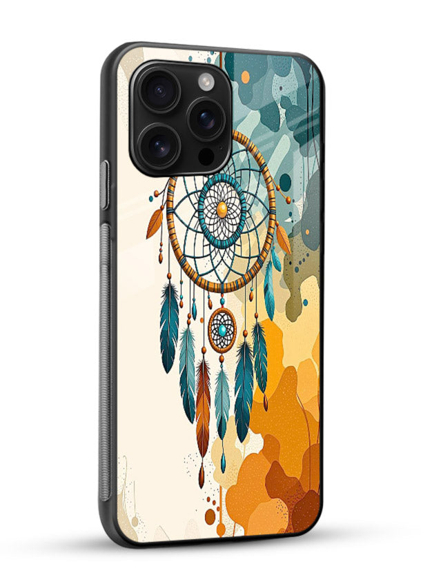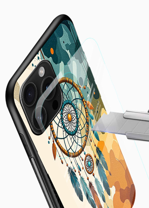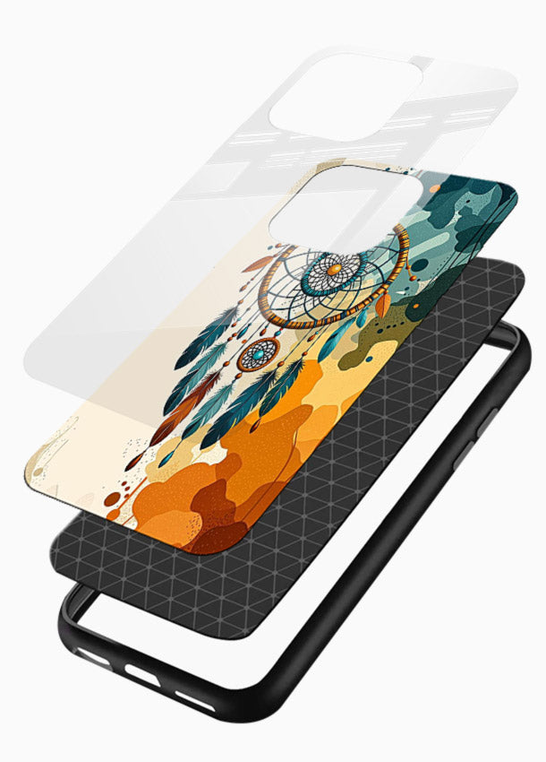 A boho dreamcatcher with earthy feathers brings grounded inspiration to your Mobile Glass glass back cover, symbolizing balance, personal strength, and mindful protection.