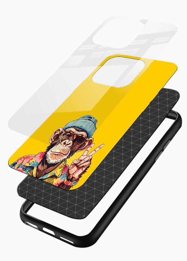 A vibrant Mobile Glass glass cover featuring a funky monkey in bright colors, giving your phone a bold, stylish, artistic and fun street-style aesthetic.