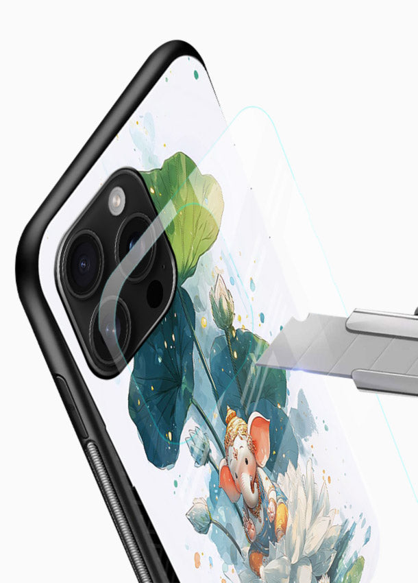 Ganesh Leaf Art Glass Back Cover