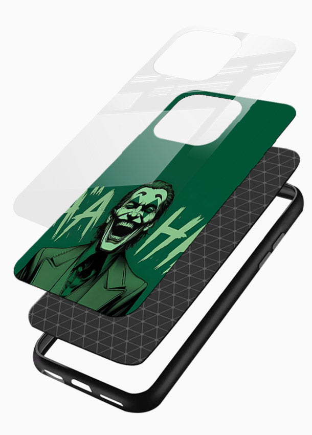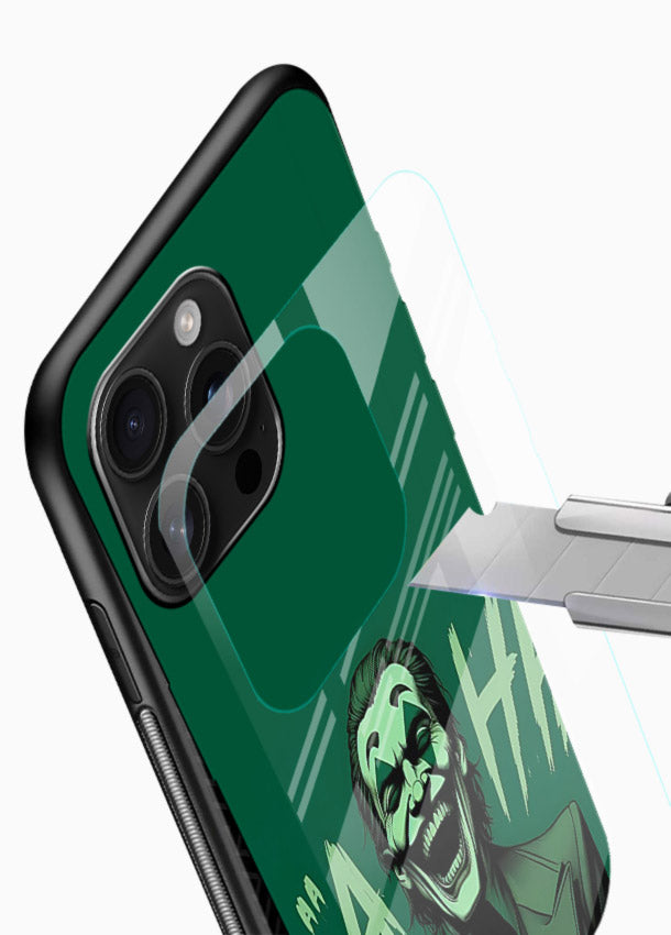 A chaotic neon Joker artwork filled with madness and energy, styled as an glass back cover that transforms your phone into a bold statement.