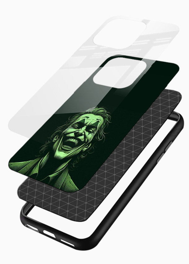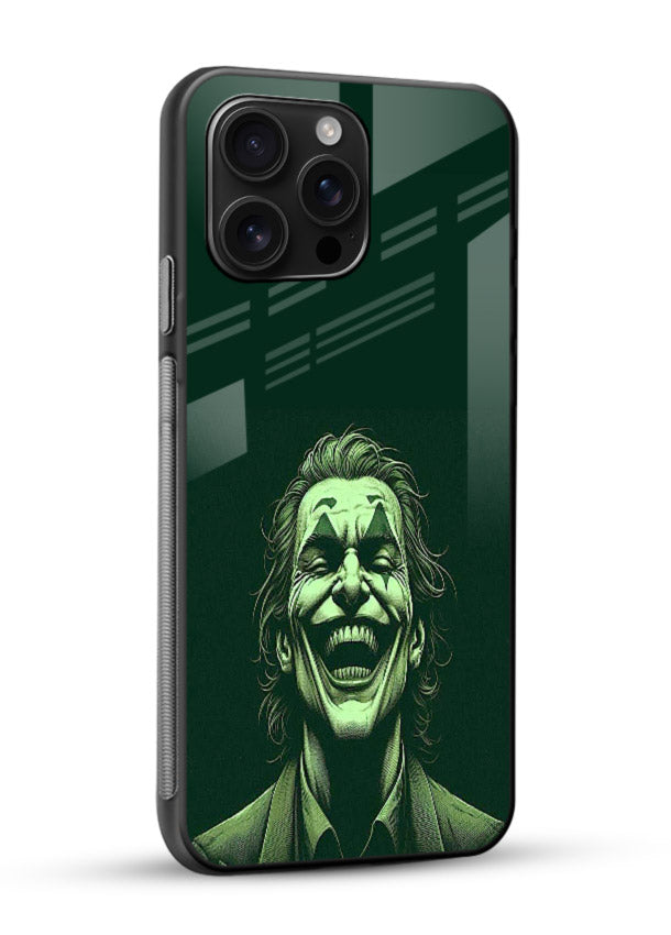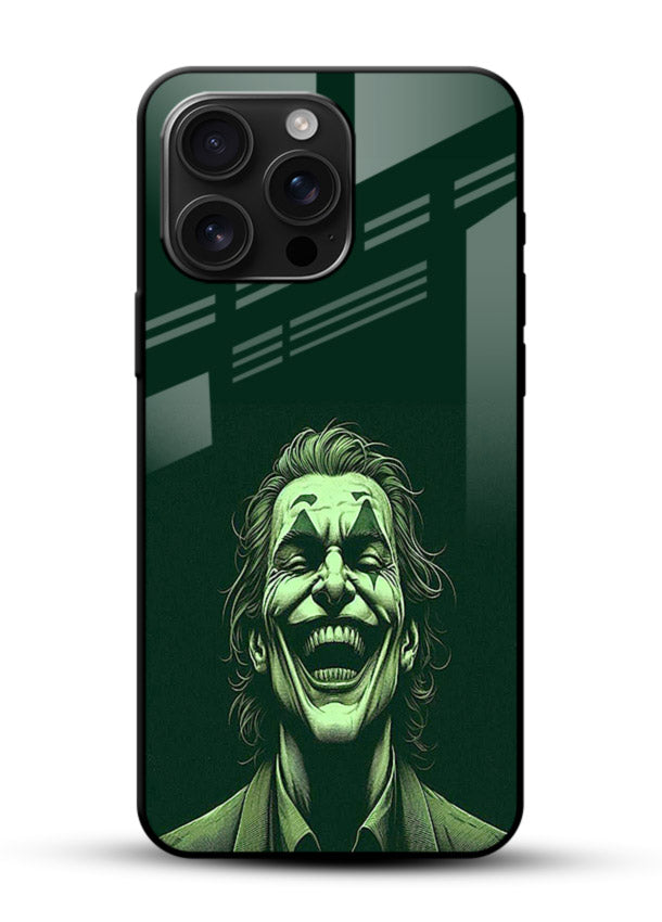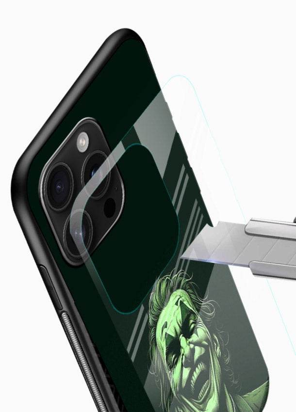 An intense Mobile Glass glass cover showing the Jokerโs toxic grin, ideal for fans who want dark, dramatic, edgy villain artwork with strong visual impact.