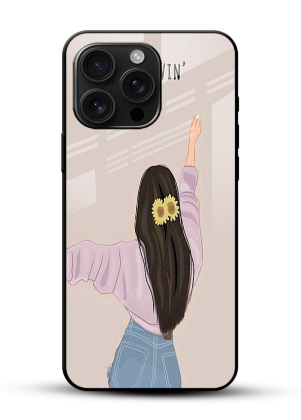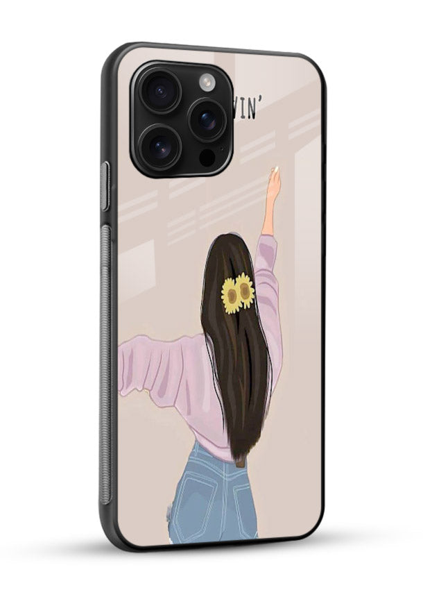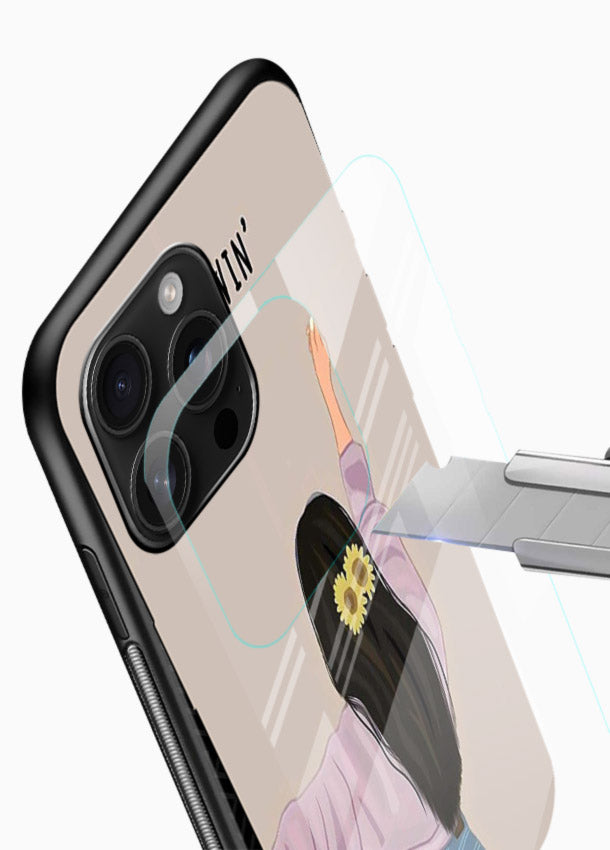 A relaxed illustrated character brings carefree, positive energy to your Mobile Glass glass back cover, inspiring you to keep moving forward with calm intention and joy.