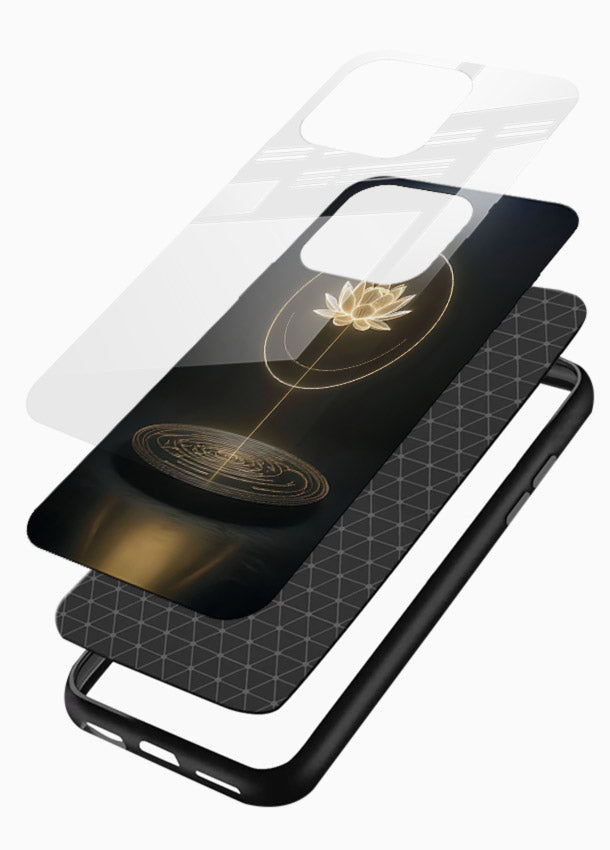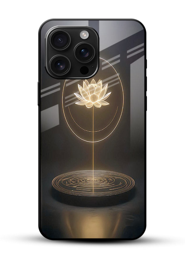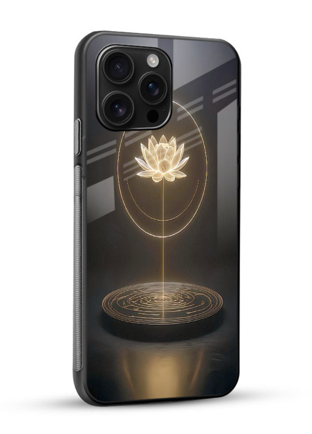 Golden lotus floating with divine halo, modern spiritual art suitable for Mobile Glass devotional lovers wanting classy minimal luxury vibes.