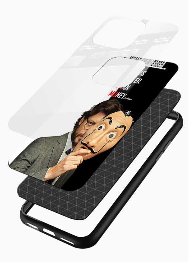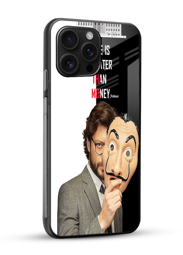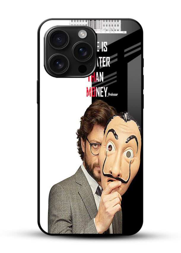 A sleek portrait-style design featuring a mysterious masked strategist vibe. Crafted with high-gloss tempered glass and durable shock-absorbing edges.