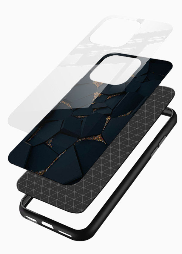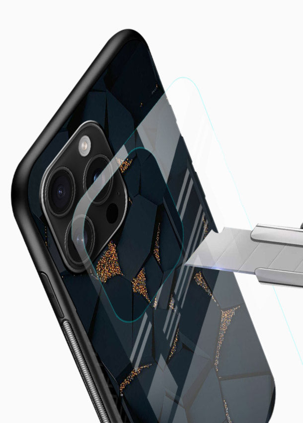 Deep midnight marble with dramatic golden veins creates a powerful luxury aesthetic, making your Mobile Glass stand out with a premium marble glass back cover.