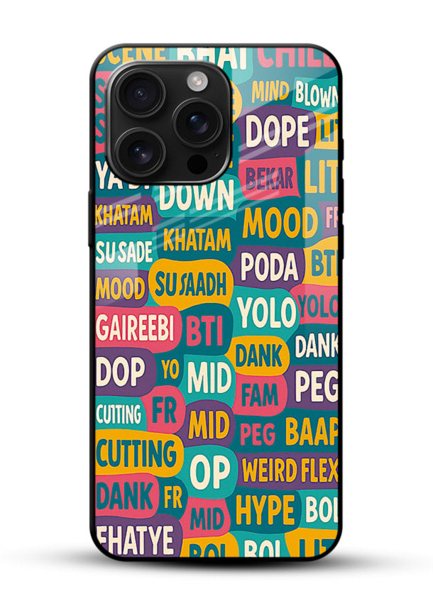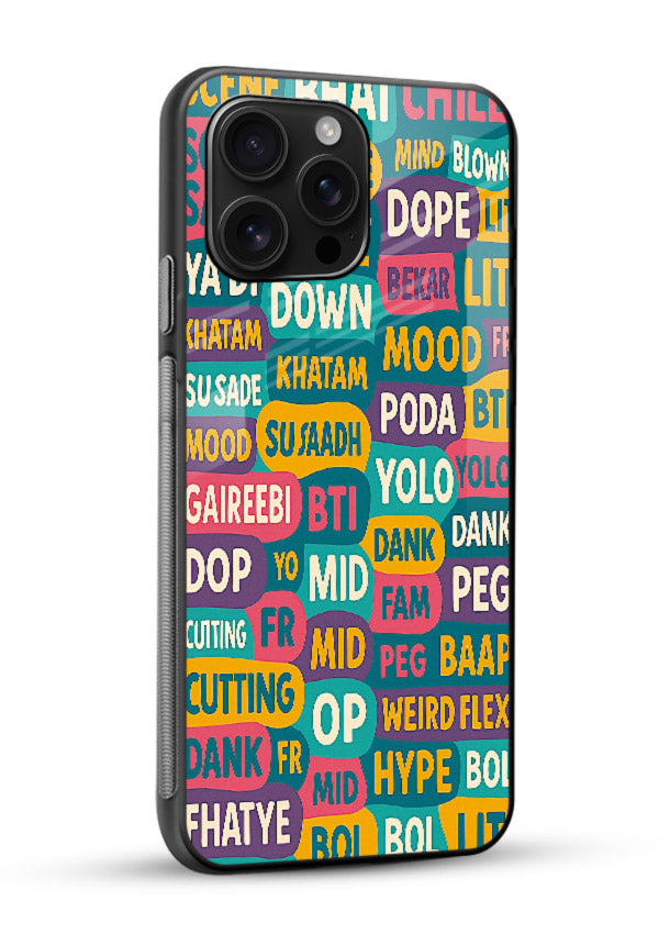 Mood Words Collage aesthetic typography artwork glossy vibrant premium glass back cover - Angle Layers