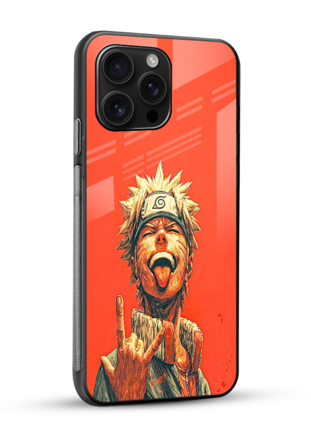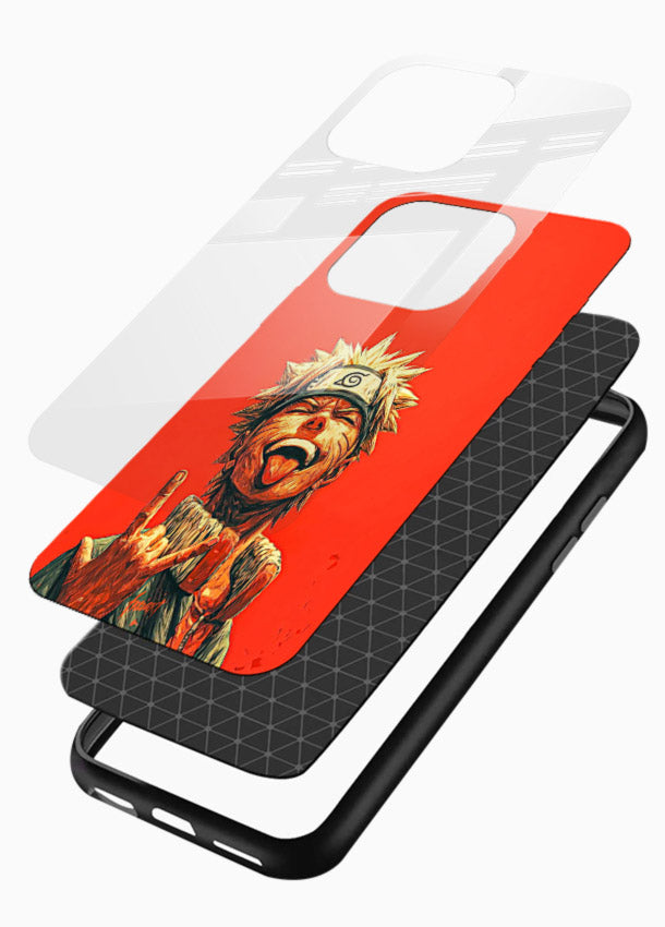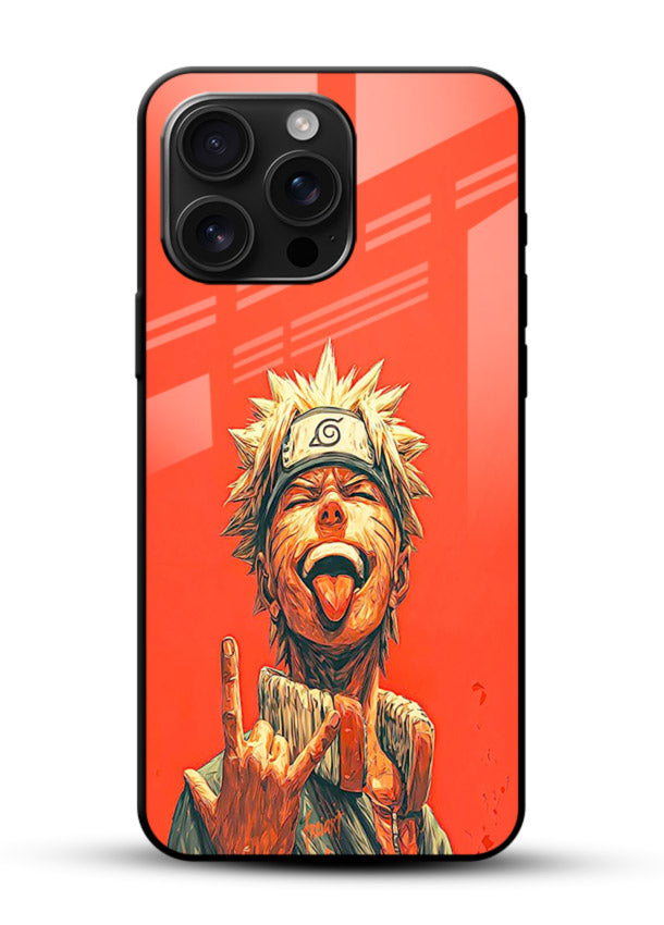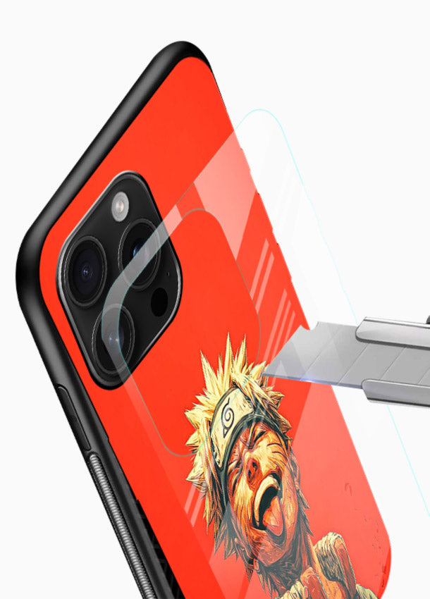 A fiery red Mobile Glass glass cover showing Naruto in a fierce pose, offering high-impact, energetic, powerful and bold anime artwork.
