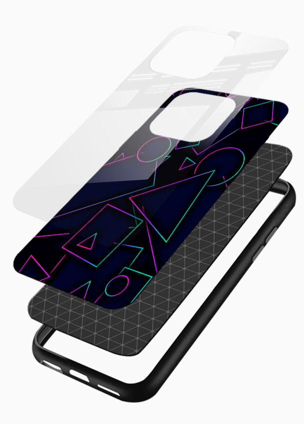 Neon Geometry Shapes Glass Back Cover