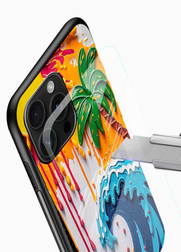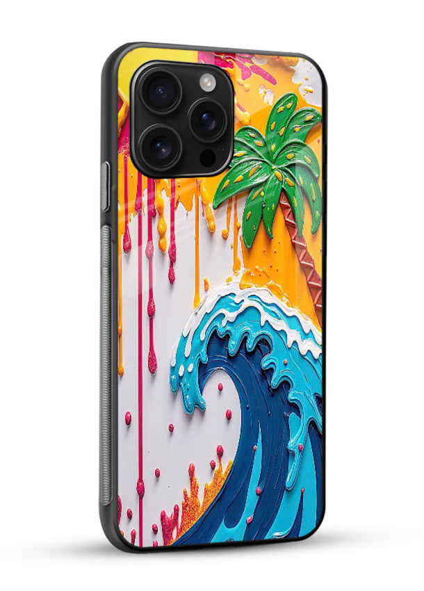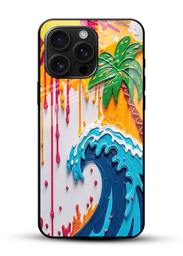 Vivid neon-colored wave splashing with dynamic abstract forms, adding bold modern aesthetic energy to your Mobile Glass glass back cover.