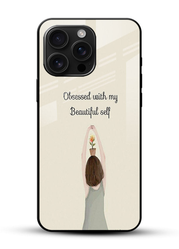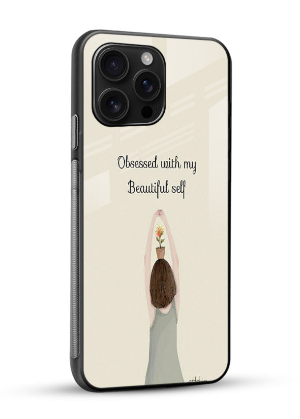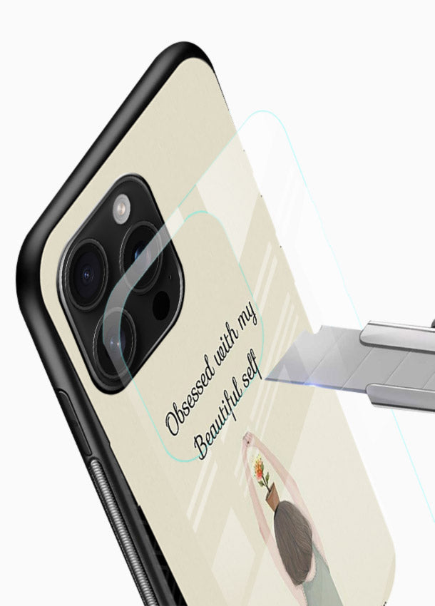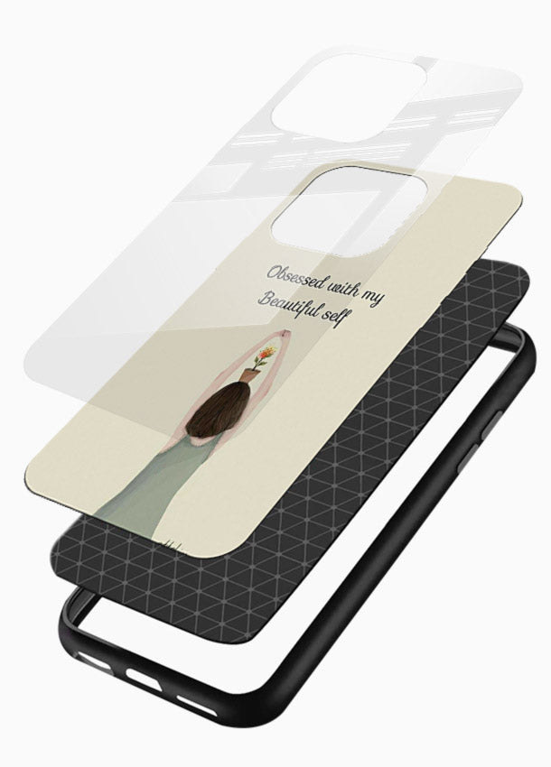 A minimalist silhouette paired with a self-improvement message turns your Mobile Glass glass back cover into a strong reminder of progress, healing, and personal growth.