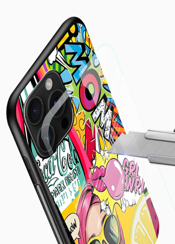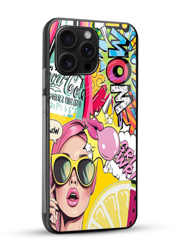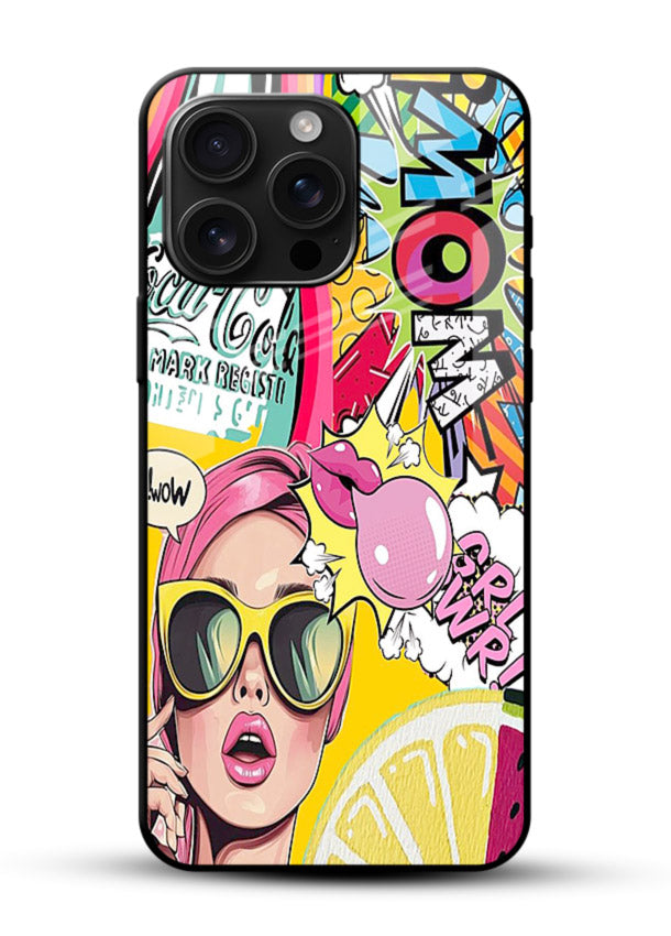 Vibrant pop-art design featuring bold sunglasses and expressive colors, creating a striking GenZ aesthetic ideal for your Mobile Glass glass back cover.