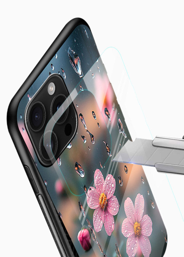 Raindrop Cherry Blossoms Glass Back Cover