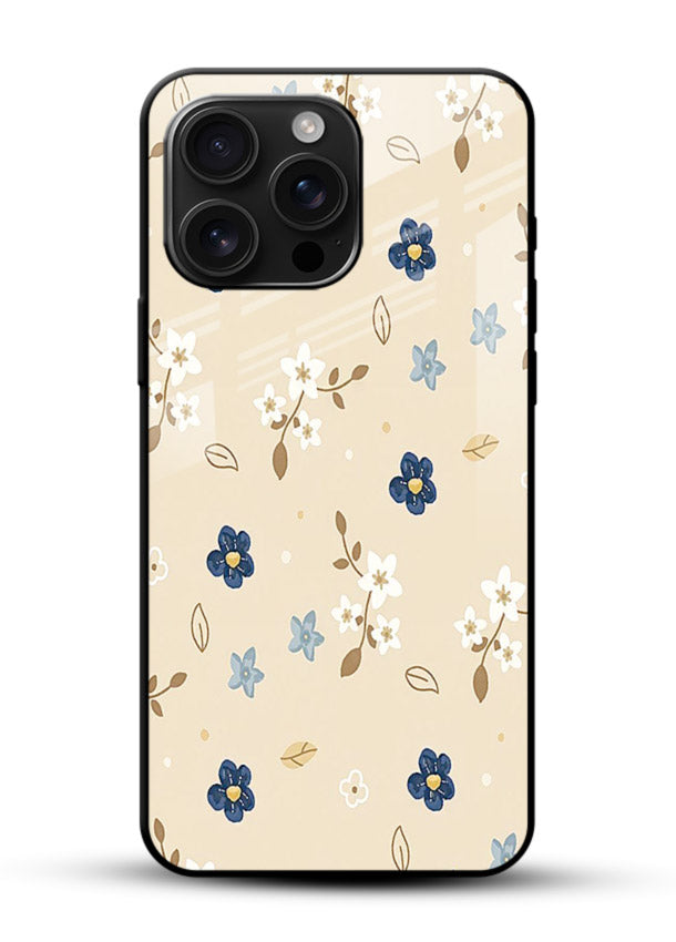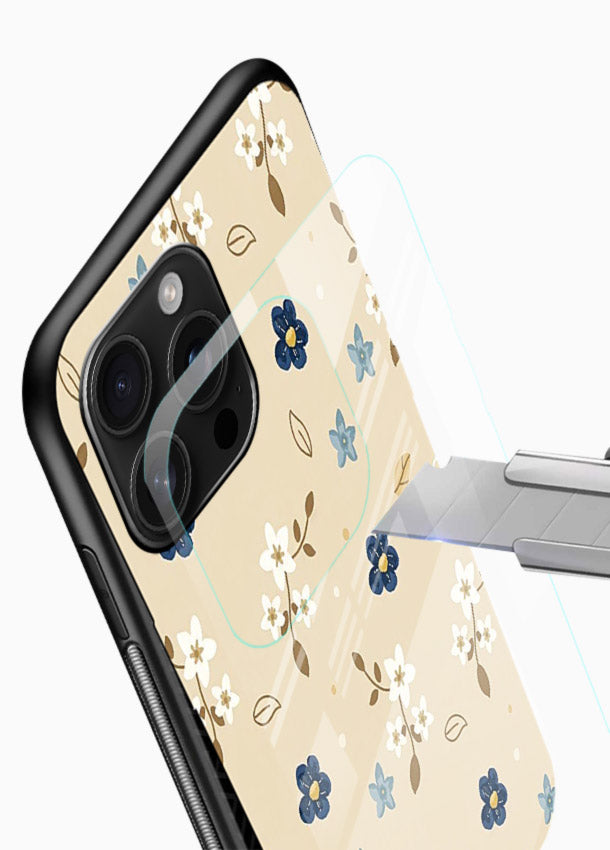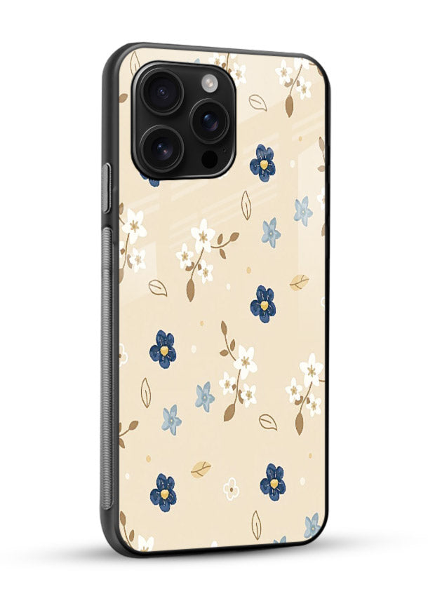 Gentle beige floral pattern with delicate petals and minimal linework, adding a calming premium aesthetic to your Mobile Glass patterned glass back cover.