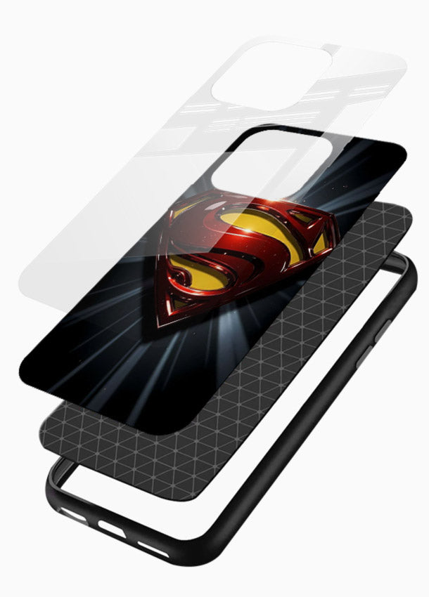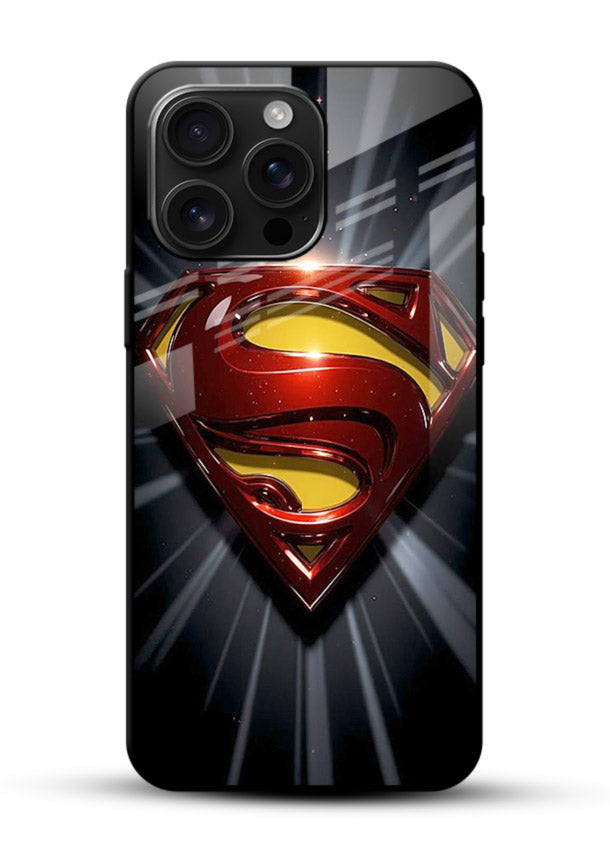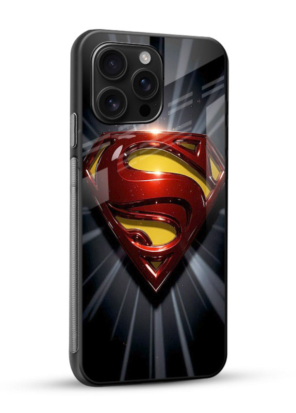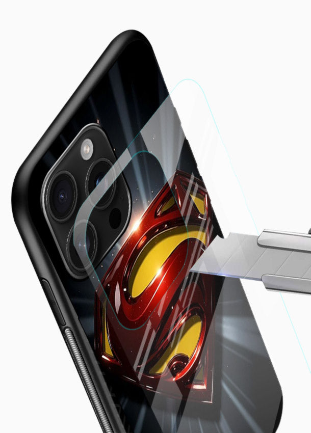 A glowing Superman emblem radiating heroic energy, designed as an glass back cover that gives your phone a strong symbolic presence.