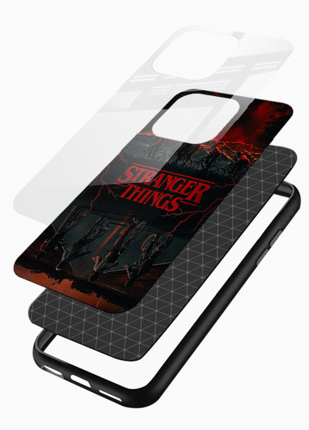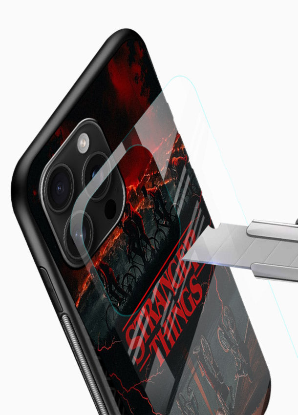 A dark supernatural-themed landscape inspired by parallel-world mystery aesthetics. Premium tempered glass back enhances shine while reinforced edges ensure durability.