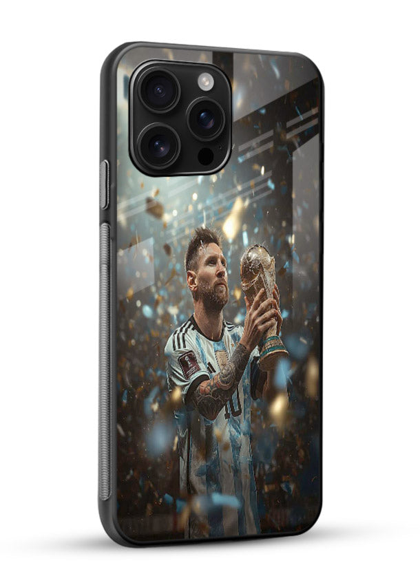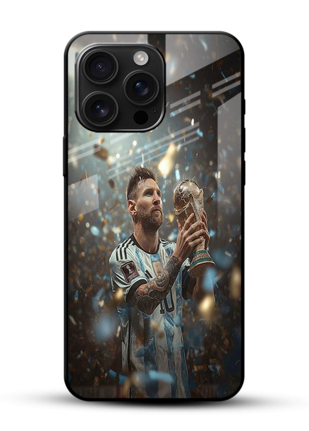 A triumphant football scene capturing a champion lifting glory under golden lights. Crafted with high-gloss tempered glass and durable shock-absorbing edges.